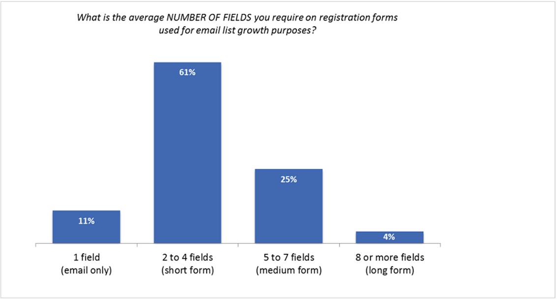 Kurze Anmeldeformulare mit nur 2 – 4 Feldern, welche bei der Anmeldung auszufüllen sind, scheinen der „goldene Schnitt“ zu sein, auf den immerhin 61% der befagten Unternehmen setzen: